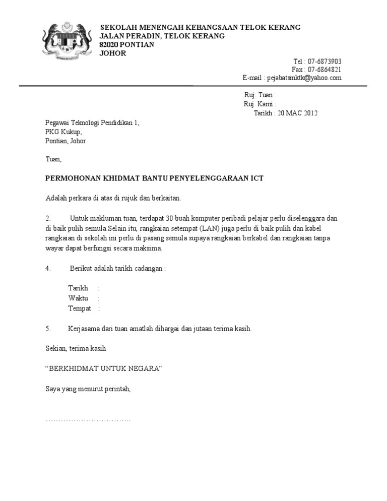 Contoh Surat Permohonan Bantuan Sebagai makhluk sosial meminta bantuan adalah hal yang wajar. Fakulti Pendidikan Universiti Kebangsaan Malaysia. 0341 8341600 Hunting Fax.